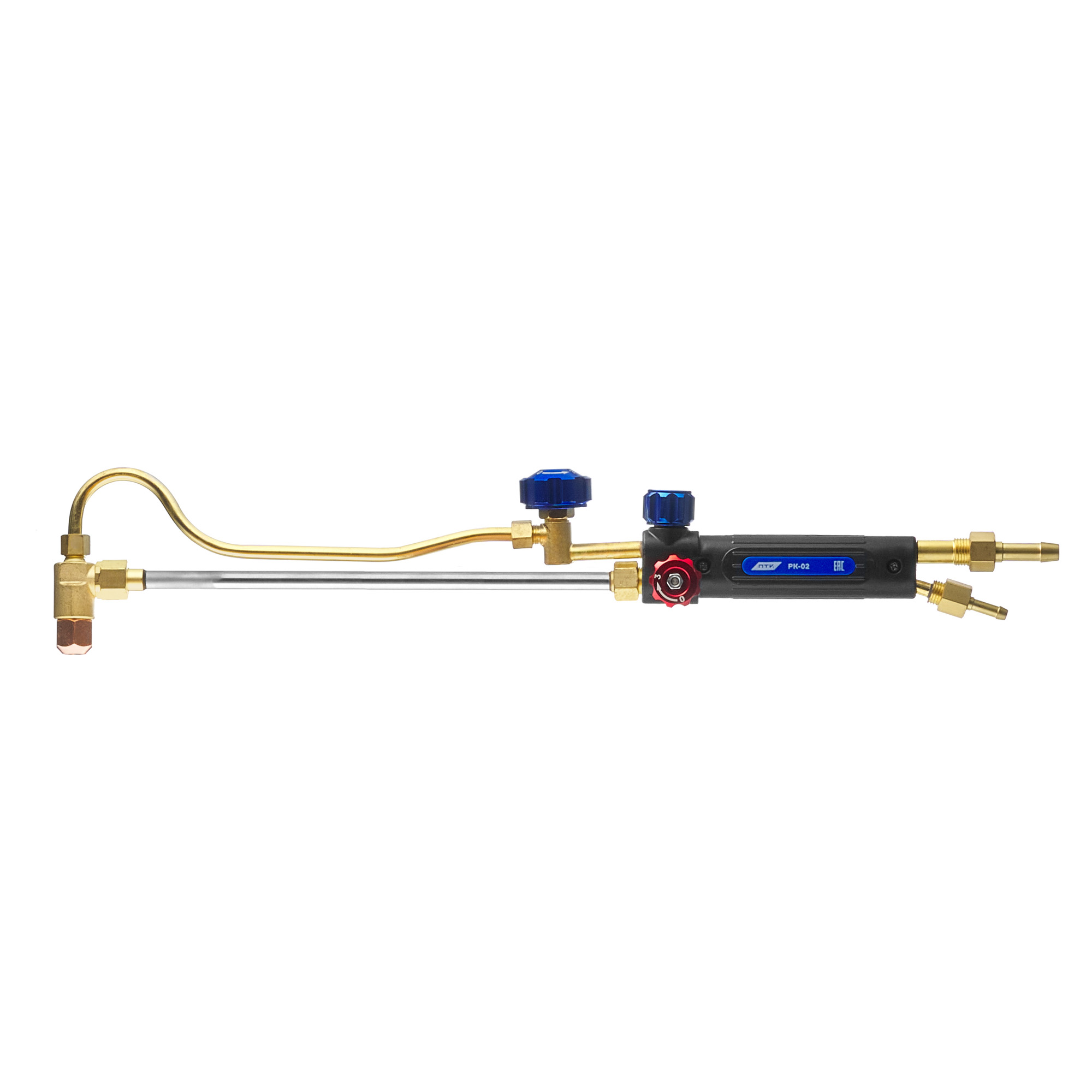 Резак жидкотопливный керосиновый РК-02 – это керосино-кислородный резак, который предназначен для ручной разделительной резки низкоуглеродистых сталей толщиной до 300 мм. В качестве горючего используется керосин осветительный по ОСТ 38.01407-86 или топлива ТС-1 по ГОСТ 320.001.499.43.011-99.Керосинорез является жидкотопливным резаком «распылительного» типа. Керосин через капиллярную трубку поступает к головке, где подхватывается кислородом подогревающим (КП) и, обогащая его, образуется аэрозоль кислородо-керосиновой смеси с последующим испарением аэрозоли в кольцевом канале между нагретыми наружным и внутренним мундштуками.Резак поставляется в сборе с наружным мундштуком №1К, с внутренними мундштуками №1К, 2К, 3К с кольцевыми зазорами для выхода подогревающего пламени и резиновым уплотнительным кольцом. Давление на входе и расход зависит от установленного внутреннего мундштука. В руководстве по эксплуатации указаны ориентировочные данные.Маркировка внутренних мундштуков и толщина разрезаемого металла:№0К (5–8 мм) – мундштук не входит в комплект поставки к резаку, приобретается отдельно.№1К (8–15 мм)№2К (15–30 мм)№3К (30–50 мм)№4К (50–100 мм) – мундштук не входит в комплект поставки к резаку, приобретается отдельно.№5К (100–200 мм) – мундштук не входит в комплект поставки к резаку, приобретается отдельно.№6К (200–300 мм) – мундштук не входит в комплект поставки к резаку, приобретается отдельно.Маркировка наружных мундштуков:№1К№2К – мундштук не входит в комплект поставки к резаку, приобретается отдельно.Особенности резака РК-02:Классическая компоновка вентилей. Конструкция схожа с газовыми резаками инжекторного типа.Полный выход на рабочий режим в течение 2-х минут.Резак укомплектован ниппелями, что позволяет использовать рукава без дополнительных переходников. Для подачи кислорода используется ниппель диаметром 9 мм и накидная гайка с резьбой M16х1,5. Для подачи керосина используется ниппель диаметром 6 мм и гайка накидная с резьбой М14х1,5.Линза присоединения трубки режущего кислорода и гайки крепления к линзе с резьбой М12х1,25 мм.Товар поставляется в индивидуальной упаковке, что исключает бой и обеспечивает сохранность комплектации во время транспортировки и хранения на складе.Комплектация РК-02:Резак жидкотопливный керосиновый РК-02 – 1 шт.Мундштук наружный №1К – 1 шт.Мундштук внутренний №1К, 2К, 3К – по 1 шт.Ниппель диаметром 6 и 9 мм – по 1 шт.Гайка накидная М14х1,5 – 1 шт.Гайка накидная M16х1,5 – 1 шт.Кольцо уплотнительное резиновое – 1 шт.Руководство по эксплуатации – 1 шт.